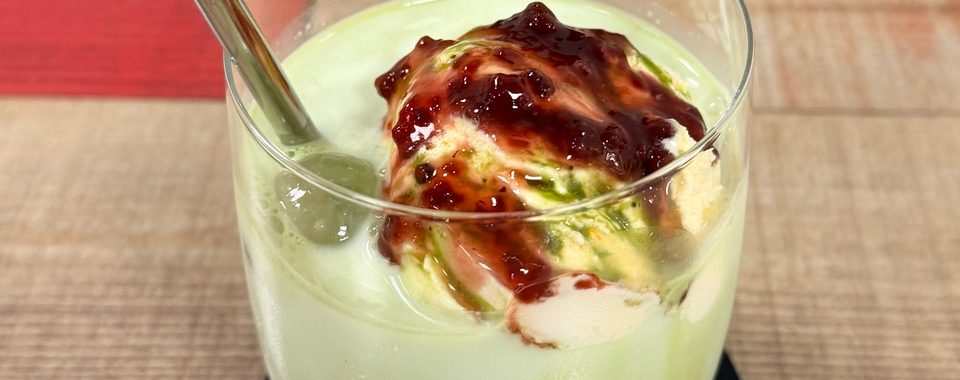 Creamy matcha meets coconut water and ice, kissed with floral lychee and fresh strawberries syrup. The ultimate layered refreshing, cooling escape.